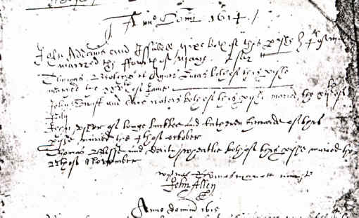 Rehoboth, Massachusetts was married November 22, 1614 at Holy Cross