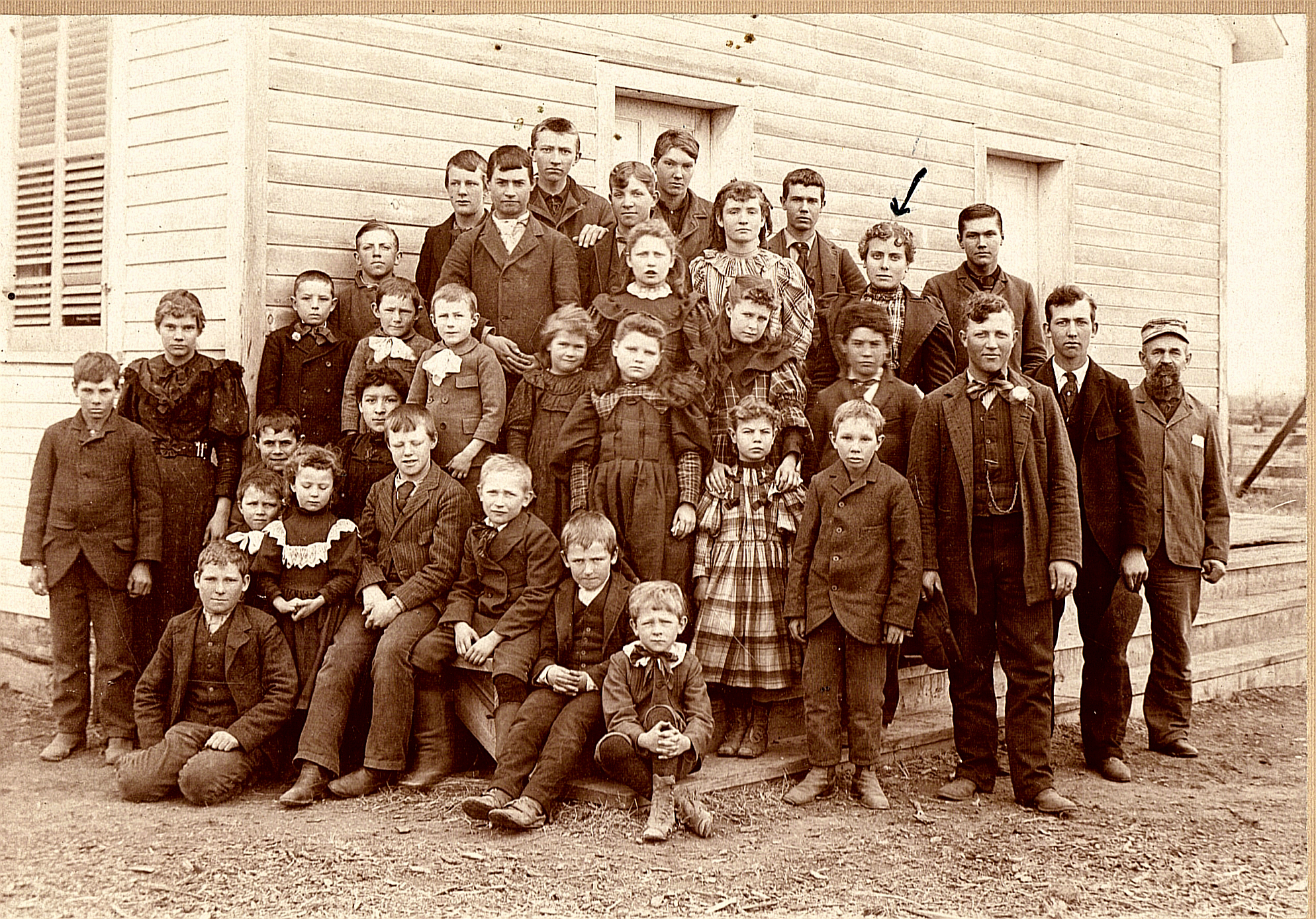 TIP TOP ALL-SCHOOL PICTURE, 1900 Back of photo reads, "No. of Hartington. Minnie Fogelson at corner