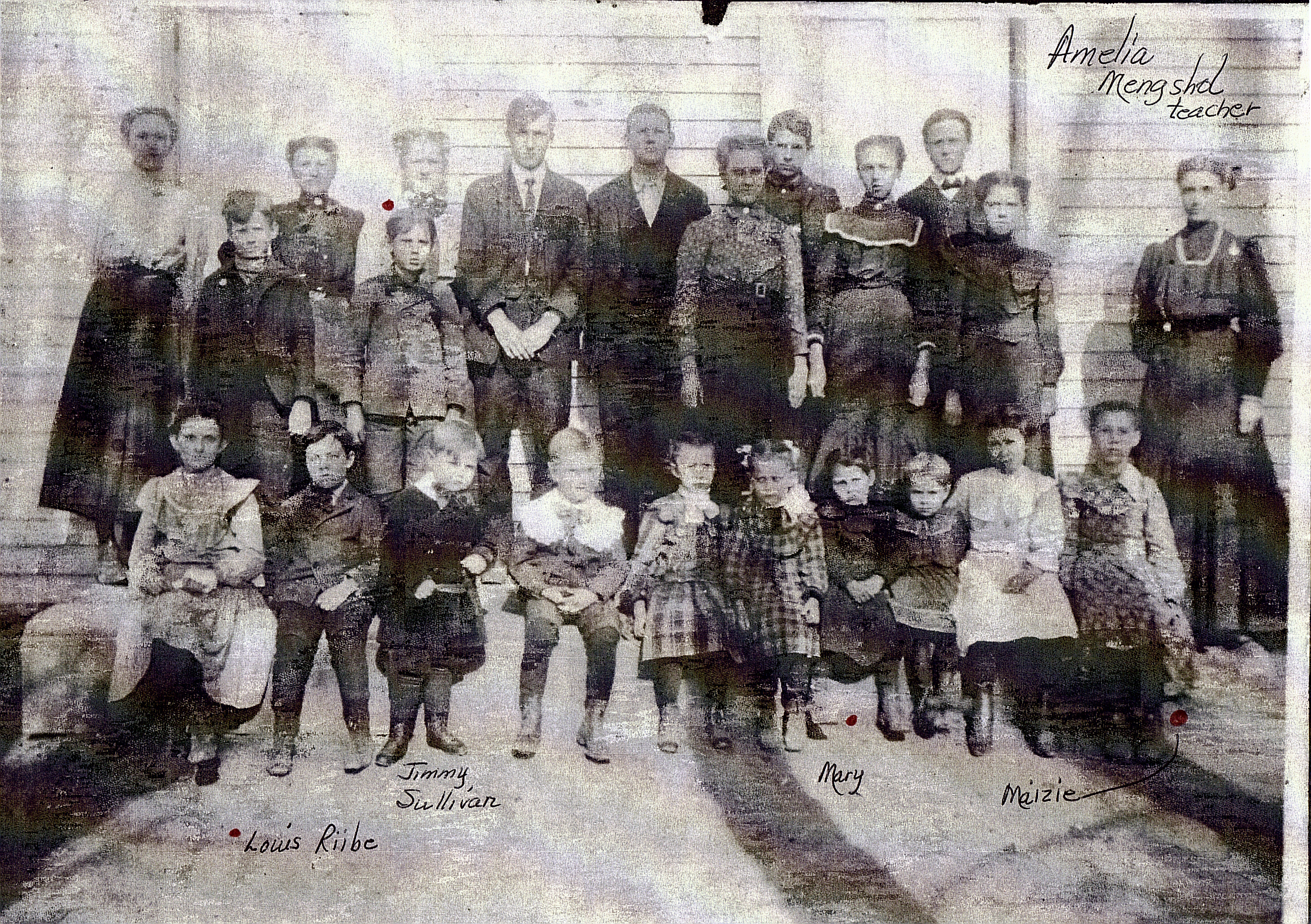 Mildred Anderson is in the 2nd row (just behind and to the left of the 3rd person (boy) in the 1st row. I believe Tom Anderson is the last boy on the left