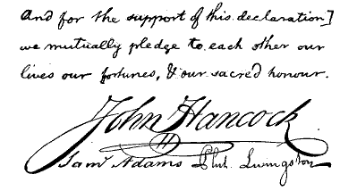 REDUCED COPY OF THE LAST LINE OF THE DECLARATION OF INDEPENDENCE