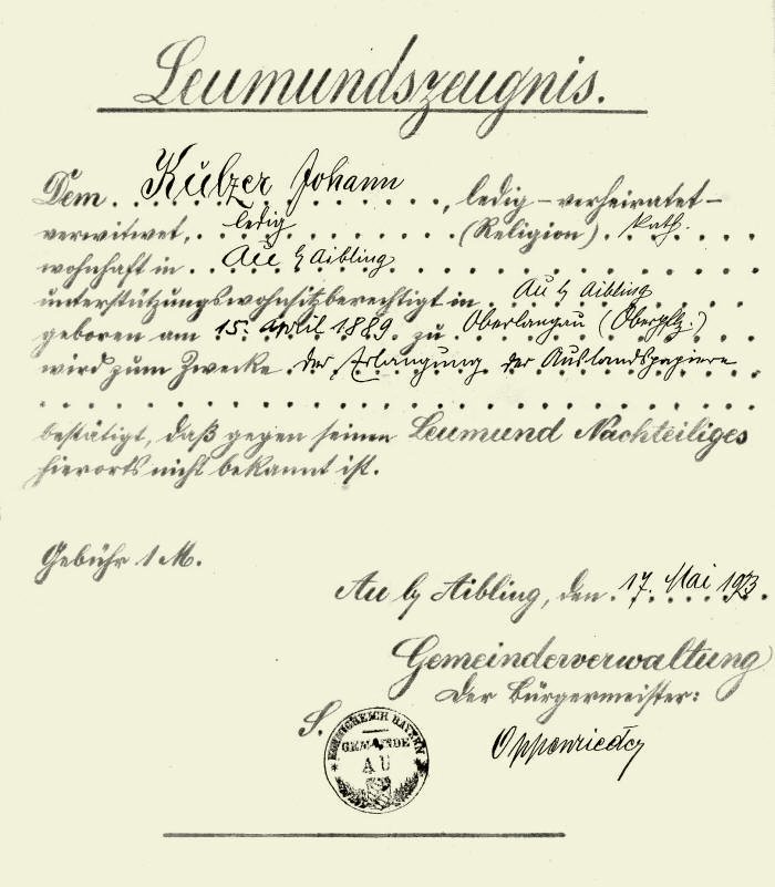 Johann Kulzer 15 Apr 1889 - 04 Sep 1959