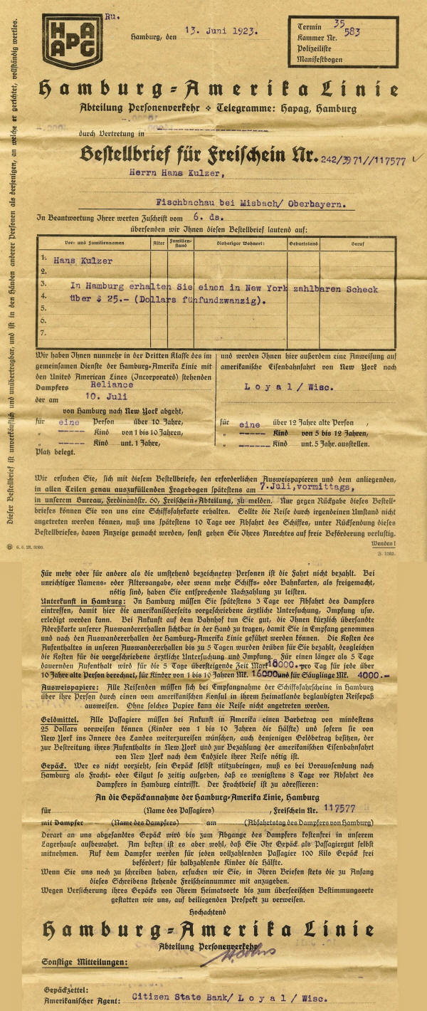 Bio: Kulzer, Johann "Hans" (1889 - 1959)