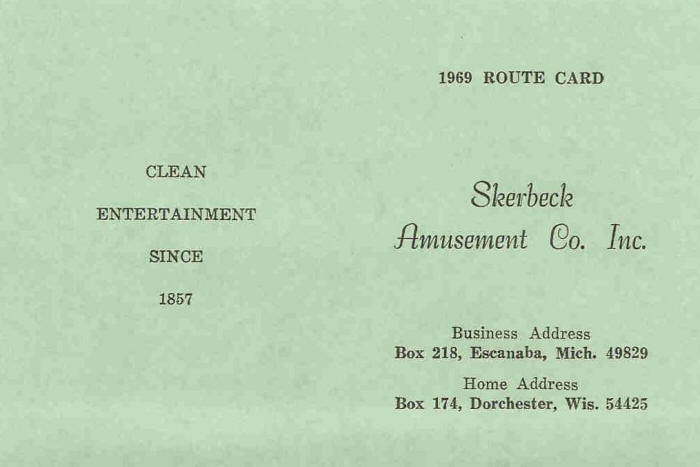 1969 Route Card for the Skerbeck Amusement Co., Inc.
