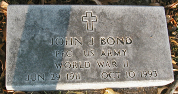 | t | Bond, John J. | 29-Jun-1911 | 10-Oct-1993 | PFC US Army, WWII | |||