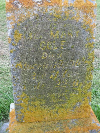 | tx | Cole, Mary; #2 | 30-Mar-1903 | Aged 71 Yr, 6 mo, 22 da | ||||