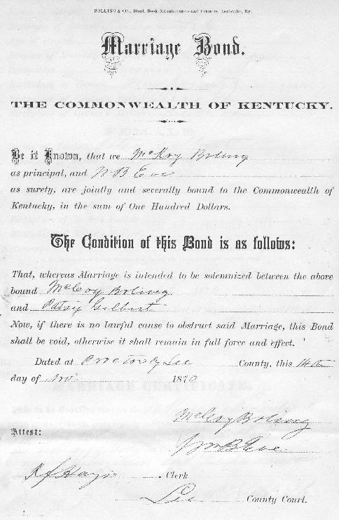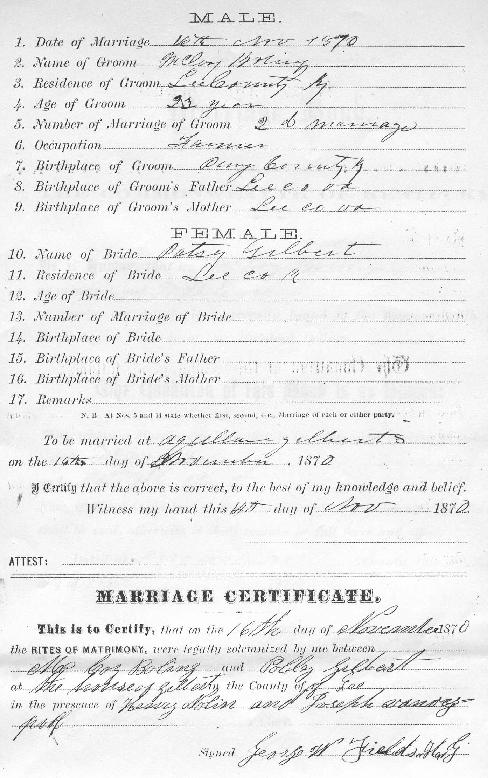 McCoy Boling & Patsy Gilbert Marriage