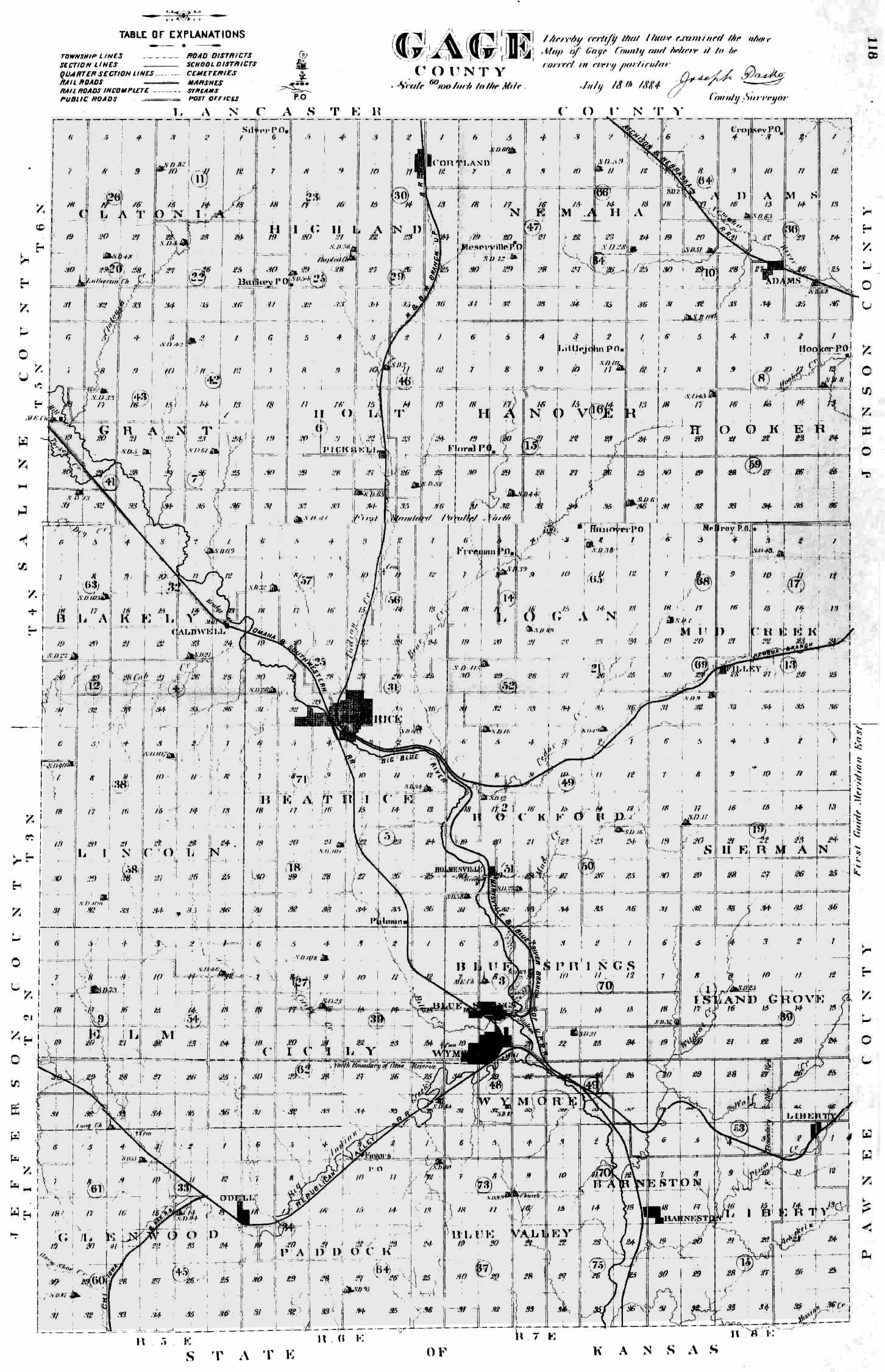 Old Map of Gage County ~ Courtesy of Dick Taylor