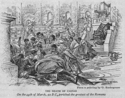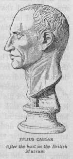 38. Caesar Appears. Thus the rich and the poor were once more struggling with each other almost as in the old days of the patricians and plebeians. First one party, then the other prevailed, and blood often flowed in the streets of Rome. Among the leaders at that time were Pompey, a famous general who had won many victories over distant nations in Asia, and Crassus, noted for his immense wealth. But soon a younger man, named Julius Caesar, began to be spoken of. Tall and erect, with hooked nose and piercing glance, this remarkable person began to show how clearly he could think and with what power he could act. The people eagerly supported him because he seemed to be their friend and champion, just as the Gracchi had been. At first Pompey, Crassus, and Caesar were friends. They made a secret agreement that they would help each other to be elected to offices and to control everything. Since there were three of them, they came to be called the "triumvirate." No one could oppose them successfully, for Pompey bad fame, Crassus money, and Caesar brains. Thus in turn they had themselves chosen as consuls, and when their year of office was up they went forth, according to the custom, as governors of wealthy provinces over which Rome ruled. Caesar chose to be governor of Gaul, the Roman name for the country we call France. 39. Caesar Conquers Gaul and Quarrels with Pompey. In Gaul Caesar did wonderful things. At that time this beautiful country was still almost a wilderness, inhabited by barbarous tribes always at war. The Romans as yet controlled only a little of the southern part. From the beginning Caesar had to face unusual dan-. gers. To get the better of their neighbors one of the Gailic tribes called to their aid the fierce Germans who lived in the wild regions beyond the Rhine. Under the lead of a chief called Ariovistus an immense number of these barbarians crossed over into Gaul and threatened to overrun the whole country. In terror the Gauls now appealed to Caesar for protection. But such stories of the huge size and great courage of the Germans were spread abroad that even the Roman soldiers were disturbed, and many of the camp followers were ready to flee in terror to Italy. Caesar, however, was not afraid. Calling his officers together, be made a brave speech by which he restored their courage. Then the Roman army marched against the Germans. In a terrible battle the barbarians were defeated and driven out of Gaul. Later, in order to terrify the Germans still further, Caesar caused his engineers to build a bridge across the Rhine. The task of spanning this great stream with no building material but hastily felled logs was skillfully accomplished, and then Caesar led his army over in triumph. After showing his power, he returned safely. Caesar had made up his mind that all of Gaul should come under the sway of Rome. One tribe after another was overthrown by his invincible legions, which won many battles against overwhelming numbers of brave but undisciplined Gauls. The wh9le country finally seemed to be subdued. But when he did not expect it, the tribes rose 3uddenly against Caesar. Up to this time the Gauls had seldom been able to unite. Now, however, a great conspiracy was formed by a young and able chief named Vercingetorix. Though no doubt a barbarian, Vercingetorix was a patriot ready to die to save his country from slavery to Rome. Never was Caesar in such danger. A great defeat by Vercingetorix seemed to sweep away the result of all his conquests. But the Roman commander now showed his genius. Rallying his army, he overthrew the untrained Gallic warriors and forced their brave leader to take refuge in his stronghold of Alesia. Here Vercingetorix thought he could hold out. But Caesar, with the aid of his skillful engineers, built fortifications entirely around Alesia. An army of Gauls which came to relieve the fortress was beaten, and after a long siege Vercingetorix and his warriors had to surrender. The unfortunate chief was taken to Rome, paraded through the streets, and finally executed. Yet to this day his memory is honored by the French people as that of a brave man who tried to save his country. Besides subduing Gaul, Caesar undertook other enterprises. During the conflicts the Gallic tribes received aid from the people of a distant country which the Romans called Britannia. It was England, then an almost unknown land inhabited by a race called Britons. The Britons were kinsfolk of the Gauls. But they were more barbarous. Great influence was held among them by their priests, called Druids. Groves of oak trees were their chosen retreats, and they paid special veneration to the plant called mistletoe. The Druids carried on the rites of a dark and gloomy religion whose gods they tried to appease by human sacrifice. Caesar determined to teach the Britons that even the sea could not save them from the power of Rome. When the ships of Caesar came within sight of the white cliffs of Britannia, he found the Britons drawn up to defend their land. They had spears and darts, and the skins of many of them were tattooed a blue color. Some of the chiefs rode in war chariots having sharp blades attached to the wheels so that they could cut down their foes. At first the Rornans could not land because of the shower of darts and stones rained upon them. But Caesar made two expeditions to Britannia, but since it was so far away he did not try to hold it permanently. All Gaul, however, was brought by him under the rule of Rome. By his marches and battles he showed himself one of the greatest generals Rome had ever produced. But meanwhile things were changing at home. Crassus was now dead, and Pompey had become Caesar's rival and enemy. He and many of the noble and wealthy Romans feared lest, now that Caesar had conquered Gaul, he would make himself absolute master of Rome also. Among the mob, however, many favored Caesar. He had skillfully won them to his side by giving them bribes and hav