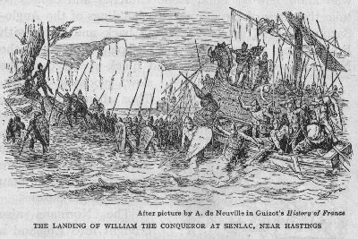 When one of the English kings died without a son, the leading men of England chose Harold, a powerful noble, to be their ruler. But William, Duke of Normandy, whom men have always called William the Conqueror, declared the late king had promised him the throne. He gathered an army of adventurous Normans, and sailing across the channel, just as Julius Caesar had done so long before, landed near Hastings (1066 A.D.). Here was fought a famous battle. The Normans had many advantages over the English. They understood how to fight on horseback and how to make skillful use of archery. Moreover, they had William to lead them. Yet all day long the English stood stubbornly together on a hilltop and beat back every attack with their swords and axes. At last William made use of a trick. He had his men pretend to retreat. Harold had been wounded, and there was no one to direct the English. They William richly rewarded his followers. He made many of them nobles, and gave them great estates in the conquered country. Here they built castles and lorded it over the Anglo-Saxons. Though the latter often rose in rebellion, they could never get rid of William and his descendants. The Normans had come to England to stay and to rule. In spite of the cruelty which they sometimes practiced, the Norman conquest was really a good thing for England. The Normans knew more than the English. They brought with them from France architects and masons who knew how to build stone churches and castles to take the place of the old wooden buildings of the AngloSaxons. Their merchants traded back and forth with France and other parts of Europe. Moreover, the Normans were more lively and quick-witted than the