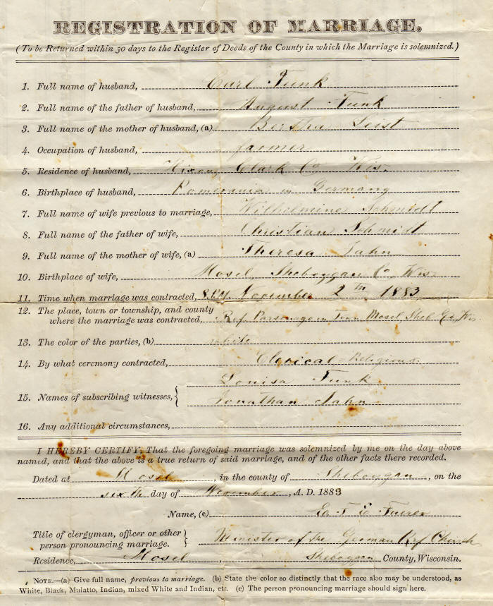 *** This copyrighted Clark Co., Wis. genealogy and history material is used by permission of the submitters.  Contact us if anyone is using this data inappropriately.  It may not be copied and posted to any commercial/.com genealogy sites such as Genealogy Trails, Family Tree Maker or the merged companies Ancestry.Com/RootsWeb/MyFamily or sold for profit.