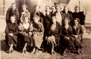 The 97th birthday of Theresa Funk.  Left to right in back: my mother, Ruth Martin (daughter of Anna and Andrew Davidson), Ethel Engel (daughter of Norma & George Funk);  Beryl Flaatten (daughter of Norma and George Funk); left to right in front: Thelma Omari (daughter of Norma and George Funk); Theresa Funk (daughter of Charles and Minnie Funk); My aunt Phyllis Davidson (daughter of Anna and Andrew Davidson).