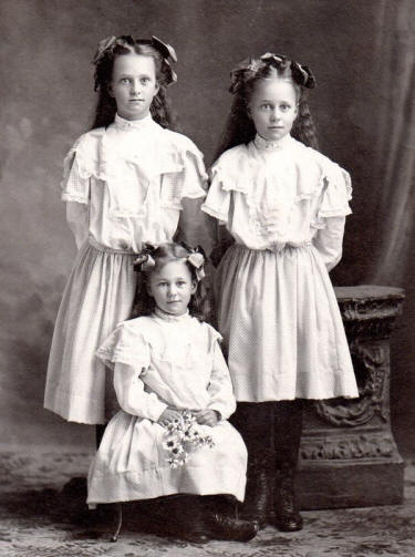 Moore Sisters, Emma standing back left, Margaret standing back right and Mildred sitting down. Curtiss, WI