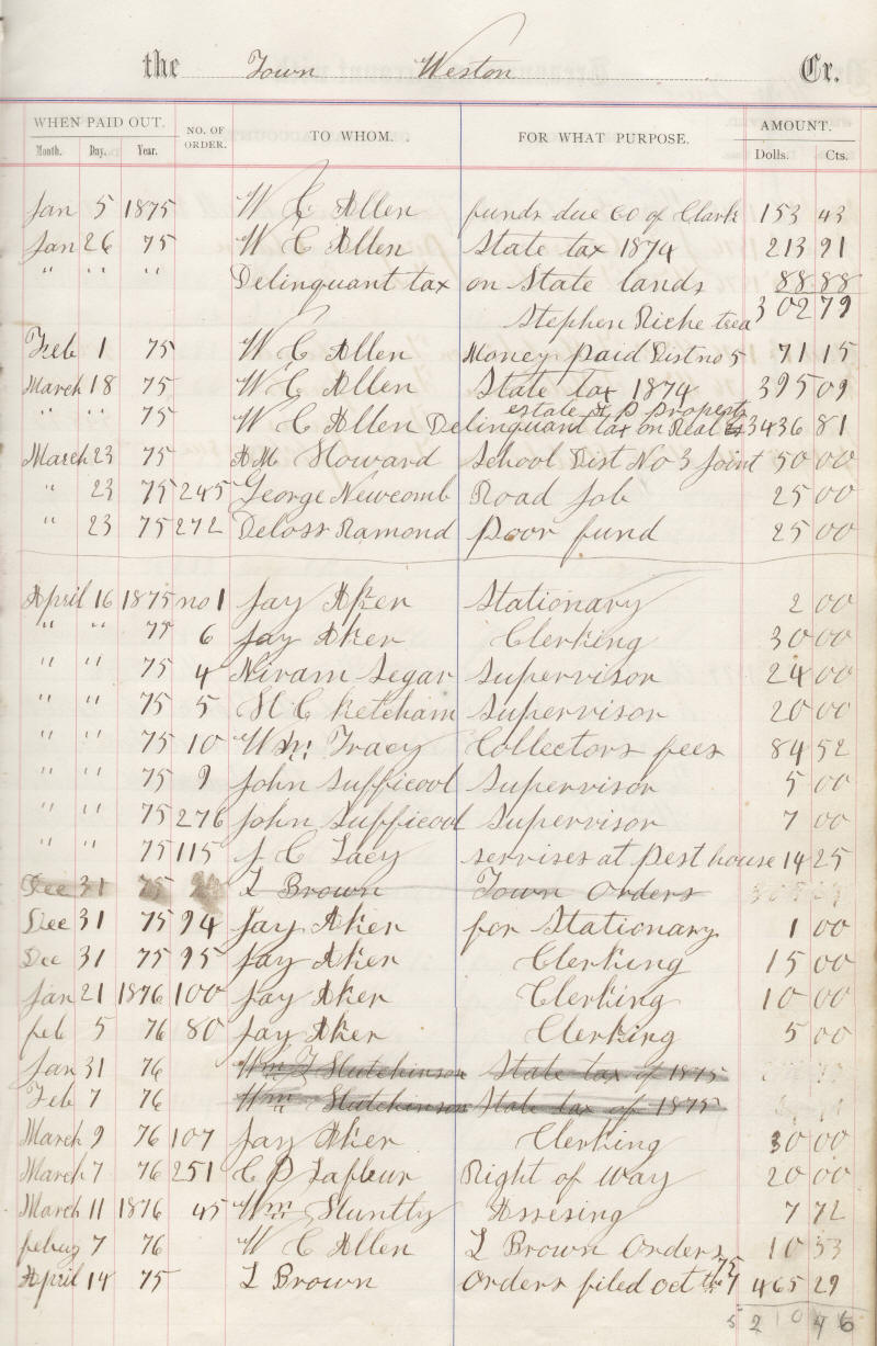 1875 Weston Township Treasurer's Ledger-4