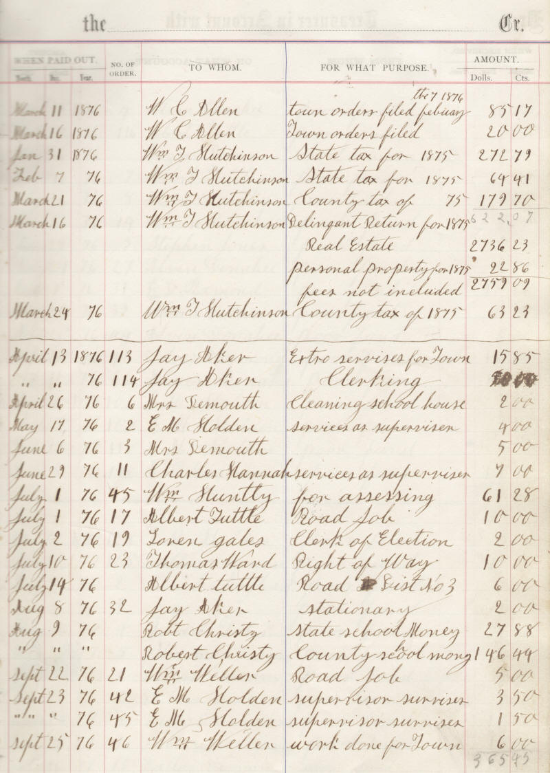 Names Mentioned Above: W. C. Allen; Wm. T. Hutchinson (William); Jay Aken; Mrs. Demouth; Elias M. Holden; Charles Hannah; Wm. Huntly (William Huntley); Albert Tuttle; Loren Gates, Thomas Ward; Robert Christy (Christie); William Weller (son of Henry Weller).