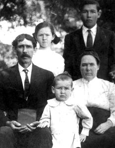 Rev. George Washington Richmond (16 Feb 1872 - 10 Apr 1924), married 20 Sep 1891 to Lenora "Nora" Emerline Groves (14 Nov 1874 - 6 Apr 1964). The boy in front is Carlie David Richmond (13 Nov 1908- 22 Jun 1997).The girl is Minnie Alice Richmond (15 Mar 1901- 1 Jul 1974),the boy in back is Boss Richmond ( 17 Nov 1896-28 Sep 1985). George and Nora were born in Todd County, Kentucky. They are buried in Gant Cemetery. |