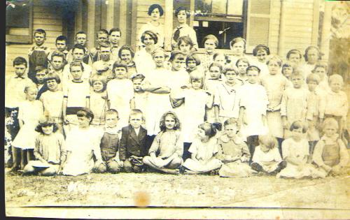 by this time I got home all rite tell aunt fanny I said hello and I wanted to see you this is a picture of our school group and I am in it Well I will close for this time from your neice Miss Maudie Ray Blick tell uncle Neg to eat up them cabbage" |