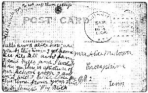 The photo is a postcard and it is dated by the U.S. Post Office Sept. 15, 1914 in Guthrie, Kentucky. It is addressed to a Mrs. Alice McDower in Cross Plains, Tennessee (RR 2). |