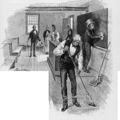 raid on the nearest dwelling house, borrowed two brooms, and when the