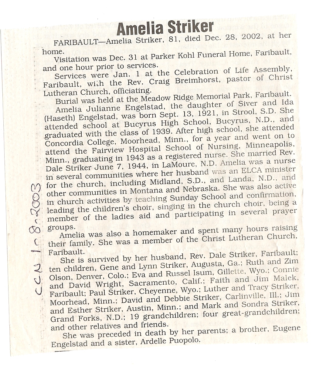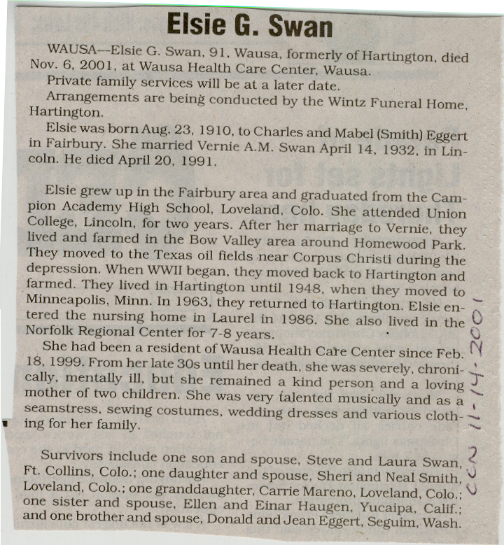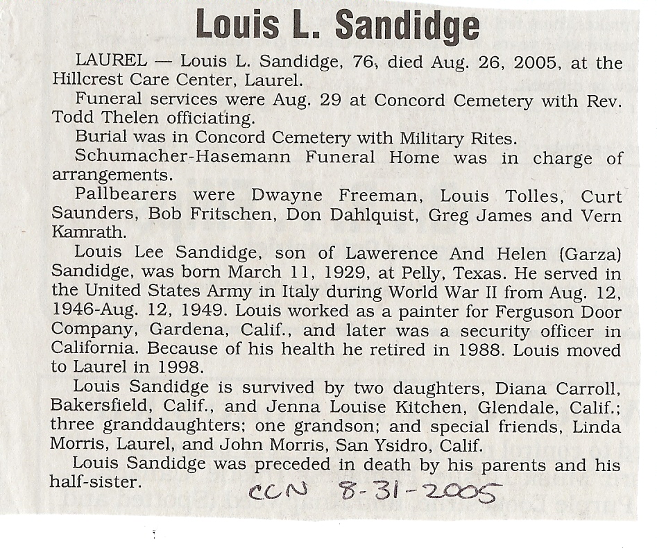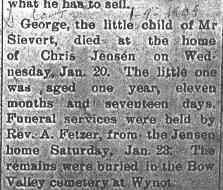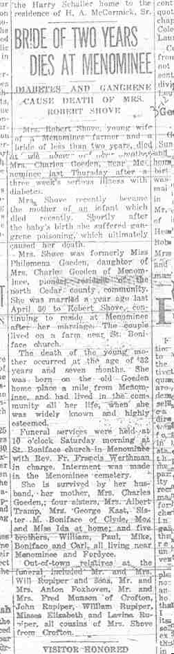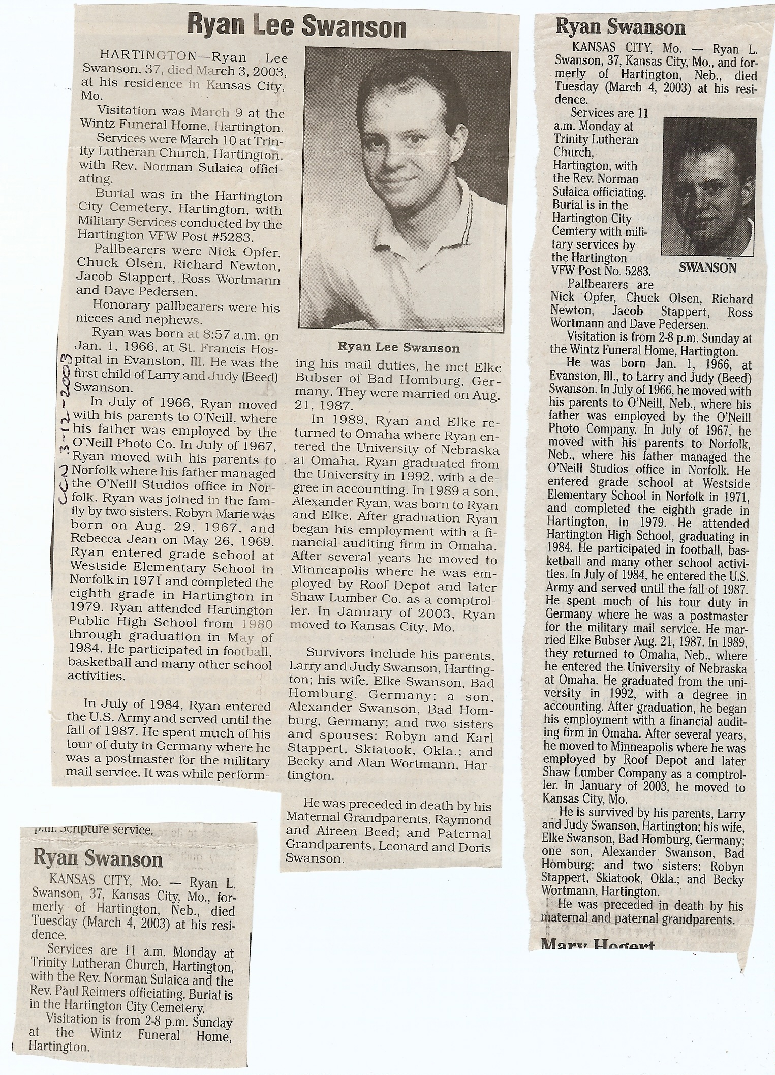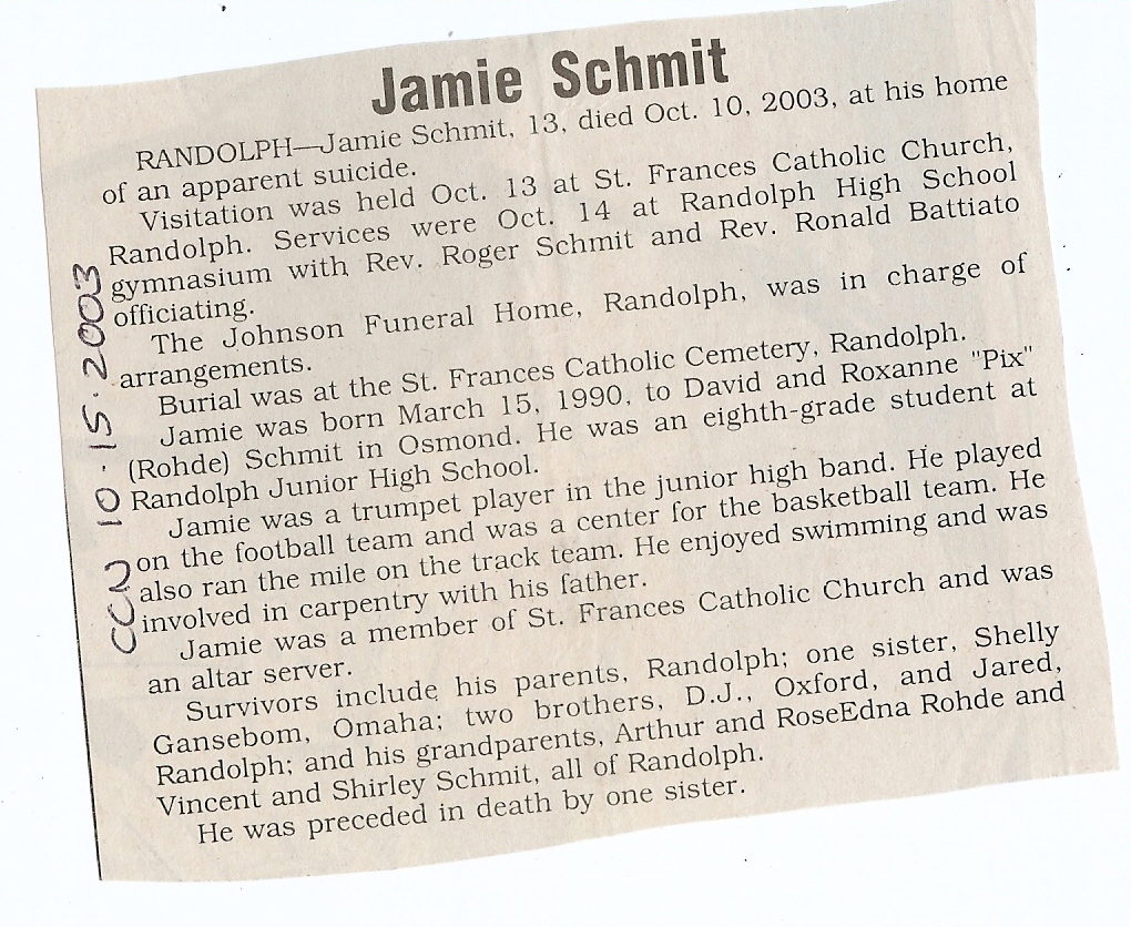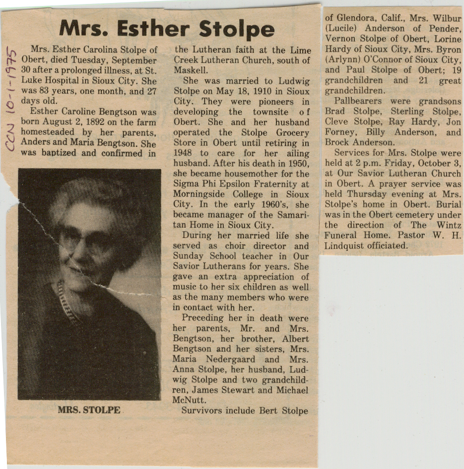 Cedar County, Nebraska Jump ahead to surnames: SAGE Betty J. Hill Published in: Cedar County News on October 13, 2004 SAGE Doris E. Trombley Published in: Cedar County News on April 17, 1999 SAGE George "June" Published in: Cedar County News on September 29, 1999 SAGE Lawrence Wilfred Published in: Cedar County News on September 29, 1999 SAHS Warren W., Dr. Published in: Cedar County News on December 24, 2003 SALA Eva Pearl Hintz Published in: Cedar County News on March 2, 2005 SALOMA Sister M. Eickleman Published in: Wynot Tribune on March 9, 1939 SALVATORI Theresa M. Schroeder Published in: Cedar County News on January 5, 2000 SAMELSON Jack W. Published in: Cedar County News on March 23, 2003 SAMELSON Lola N. Nelson Published in: Cedar County News on October 1, 1975 SANDBERG Baby Published in: The Magnet Cemetery Directory by T. Korth SANDIDGE Louis L. Published in: Cedar County News on August 31, 2005 SASSAMAN Kathryn Marie Tower Published in: Cedar County News in July 2002 SASSEN William K. Published in: Cedar County News on February 25, 2004 SATORIUS Christian Published in: Cedar County News in January 1944 SATORIUS Katherine Bergman Obit Image Published in: Cedar County News on May 13, 1954 Published in Sioux City Journal on May 9, 1954 SAWATZKE Elizabeth Eggers Published in: Cedar County News on November 10, 1975 SAYLOR Ann Marie Bracht Published in: Cedar County News on December 6, 2000 SCHAECHER Terrance Arthur "Terry" Published in: Cedar County News on April 20, 2005 SCHAEFER Mary Published in: Cedar County News on May 25, 1922 SCHAEFER Mrs. Peter Published in: Wynot Tribune on April 27, 1911 SCHAEFER Peter Published in: Cedar County News on March 4, 1920 SCHAEGER Henry "Bob" Published in: Cedar County News on February 25, 1960 SCHAGER Mrs. Christine Published in: Cedar County News on July 5, 1922 SCHAGER Larry D. Published in: Cedar County News on March 7, 2001 SCHAGER Lloyd Published in: Cedar County News on November 28, 1940 SCHALLER Harry Published in: Wynot Tribune on February 28, 1952 SCHALLERT William L. Sr. Published in: Cedar County News on March 14, 2001 SCHIEFFER Christina Elizabeth Guenther Published in: Cedar County News on January 7, 1976 SCHIEFFER Dorothy M. Published in: Cedar County News on February 11, 2004 SCHIEFFER J. Jacob Published in: Cedar County News on January 18, 1951 SCHIEFFER John Published in: Cedar County News on February 1, 1923 SCHIEFFER Joseph W. Published in: Cedar County News on December 21, 2000 SCHIEFFER Joseph W. Published in: Cedar County News on December 21, 2000 SCHIEFFER Mrs. Jacob Published in: Cedar County News on January 24, 1924 SCHIEFFER Peter J. Jr. Published in: Cedar County News on January 24, 2001 SCHINDLER Elda E. Published in: Cedar County News on January 2003 SCHINDLER Pearl Iva Carpenter Published in: Cedar County News on November 6, 1974 SCHINK Edward A. Published in: Cedar County News on December 10, 1975 SCHMECKPEPER Garron L. Published in: Cedar County News on December 20, 2000 SCHMIDT Agnes Betz Published in: Yankton Daily Press & Dakotan in October 1990 SCHMIDT Anna Hoese Published in: Wynot Tribune on November 12, 1914 SCHMIDT Anthony Published in: Cedar County News on October 13, 1955 SCHMIDT Frank Published in: Cedar County News on February 18, 1925 SCHMIDT Gerald Jr. Published in: Cedar County News on June 21, 1923 SCHMIDT Irene M. Lechner Published in: Cedar County News on May 9, 2001 SCHMIDT Kenneth Leonard Published in: Cedar County News on February 12, 2003 SCHMIDT Laurence Howard Published in: Wynot Tribune on October 9, 1913 SCHMIDT Lewis Published in: Yankton Press & Dakotan on February 15, 2001 SCHMIDT Sharon K. Mann Published in: Cedar County News on January 30, 2002 SCHMIDT Stanley N. Published in: Cedar County News on November 3, 1999 SCHMIDT Verna E. Hoesing Published in: Cedar County News in July 2000 SCHMIDT William N. Published in: Cedar County News on February 5, 1931 SCHMIT Jamie Published in: Cedar County News on October 15, 2003 SCHNEIDER Muriel Vivian Gowery Kelley Published in: Cedar County News in April 2003 SCHNEIDER Theresa Wuebben Published in: Cedar County News on July 18, 1979 SCHNEIDER Mrs. John [nee Kunz] Published in: Cedar County News on November 2, 1950 SCHNIEDERS Herman Bernard Published in: Cedar County News on July 16, 2003 SCHNIEDERS John C. Obit Image Published in: Cedar County News. SCHNIEDERS Ralph Published in: Cedar County News in December 2005 SCHOENBERNER Iven L. Published in: Cedar County News on July 26, 2000 SCHOLL Elizabeth Alvina Published in: Cedar County News on January 2?, 1951 SCHRIEBER Henry Published in: Cedar County News on April 16, 1969 SCHREINER John Published in: Cedar County News on March 1, 2000 SCHREMPP Carl Published in: Cedar County News on October 22, 1975 SCHREMPP Fred Published in: Cedar County News on October 1, 1975 SCHREMPP Mrs. Joseph (nee PETERS) Published in: Cedar County News on Oct. 22, 1915 SCHREMPP Joseph Published in: Cedar County News on March 12, 1921 SCHRIBER Dorothy Marie Kalin Published in: Cedar County News on November 29, 2000 SCHROEDER Dina Published in: Cedar County News on October 16, 1908 SCHROEDER Elizabeth Feldhacker/a> Published in: Cedar County News on February 16, 2005 SCHROEDER John Published in: Cedar County News. Date of Publication/Death: Mar. 8, 1931 SCHROEDER LeRoy F. Published in: Cedar County News on October 20, 2004 SCHULTE Mrs. Bruno (nee Stuckenhoff) Published in: Cedar County News on April 19, 1917 SCHULTE Annie Cunningham Published in: Cedar County News on September 15, 1935 SCHULTE Christine Teresa Published in: Cedar County News on January 7, 2004 SCHULTE Elizabeth Bruening "Lizzie" Published in: Hartington Herald Obit Image Published in: Wynot Tribune on April 20, 1911 SCHULTE Frank X. Published in: Cedar County News on January 8, 1975 SCHULTE Fred Henry Published in: Cedar County News. Date of Publication/Death: Sept. 21, 1951 SCHULTE Frieda M. Sudbeck Published in: Cedar County News on January 8, 1975Ma