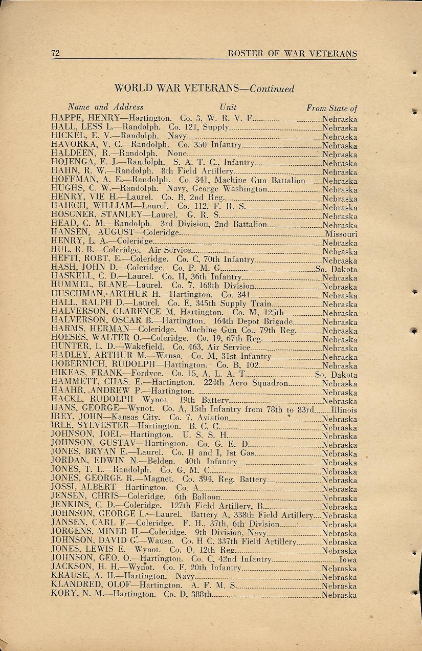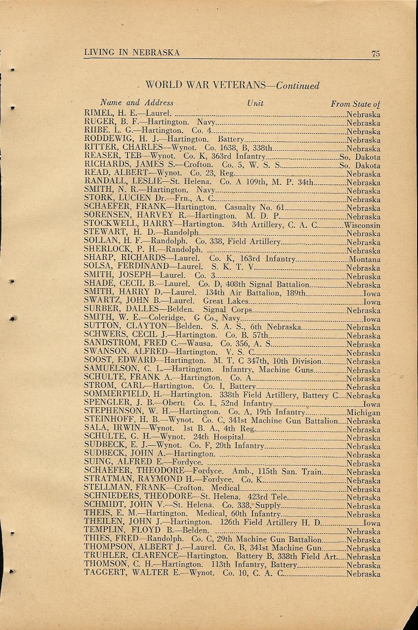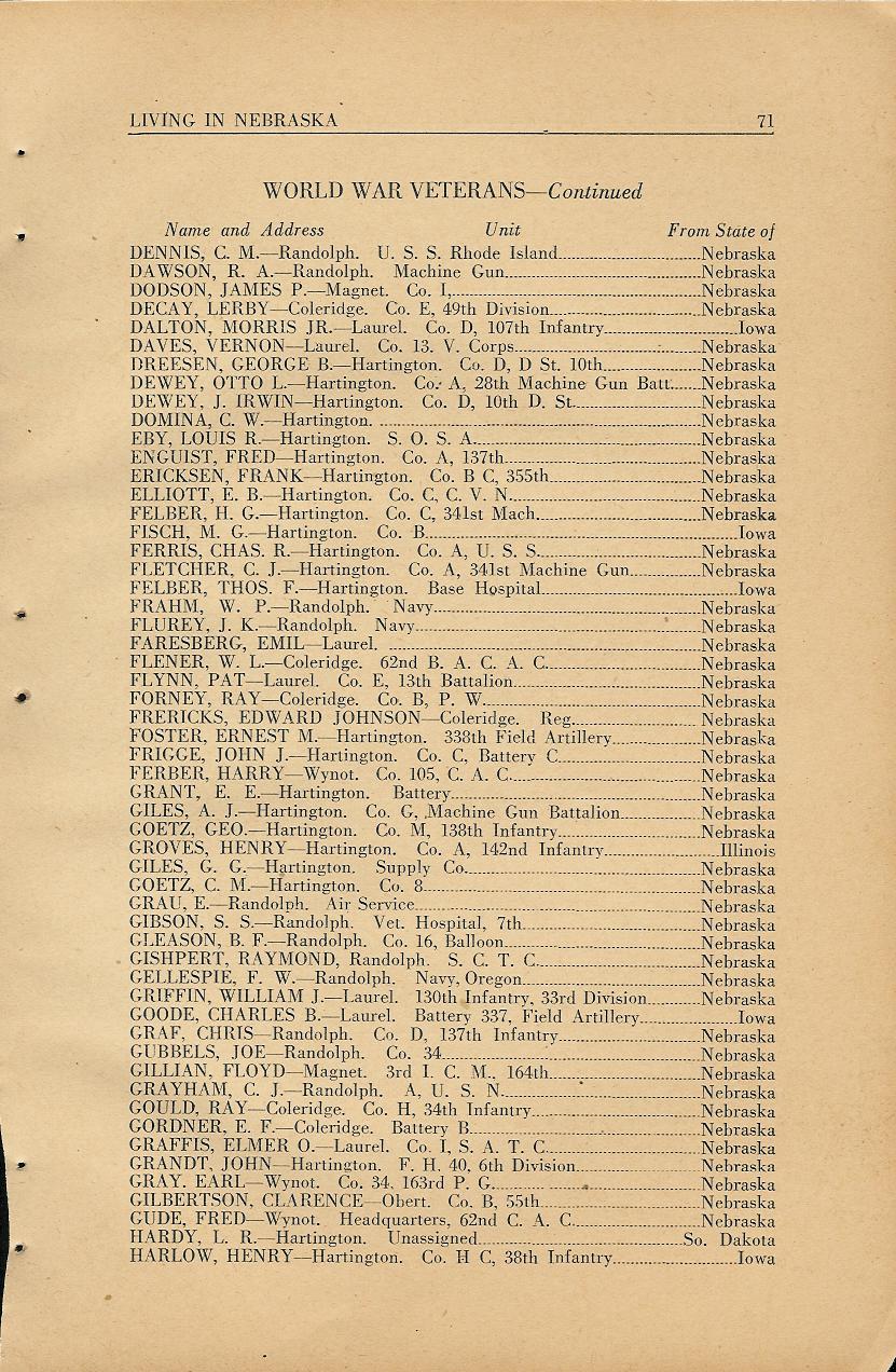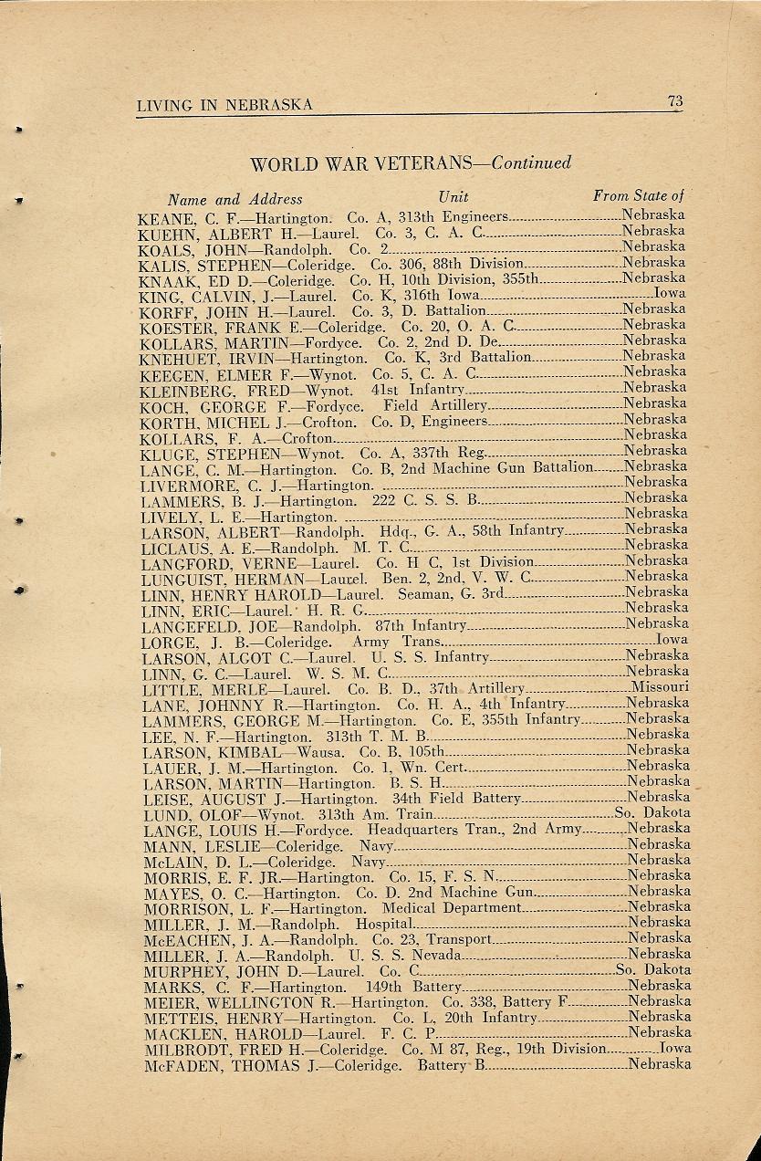who Served in the War of the Rebellion, Spanish-American War and World War, ©1925 Cedar County, Nebraska Cover Page Publication Page Forward Page 69 Civil War Veterans; Spanish-American War Veterans; World War Veterans Page 70 World War Veterans Page 71 World War Veterans Page 72 World War Veterans Page 73 World War Veterans Page 74 World War Veterans Page 75 World War Veterans Page 76 World War Veterans |