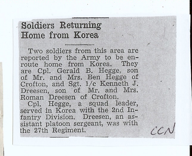 Soldiers Returning Home from Korea (Cpl. G.B. Hegge & Sgt. 1/c K.J. Dreesen)