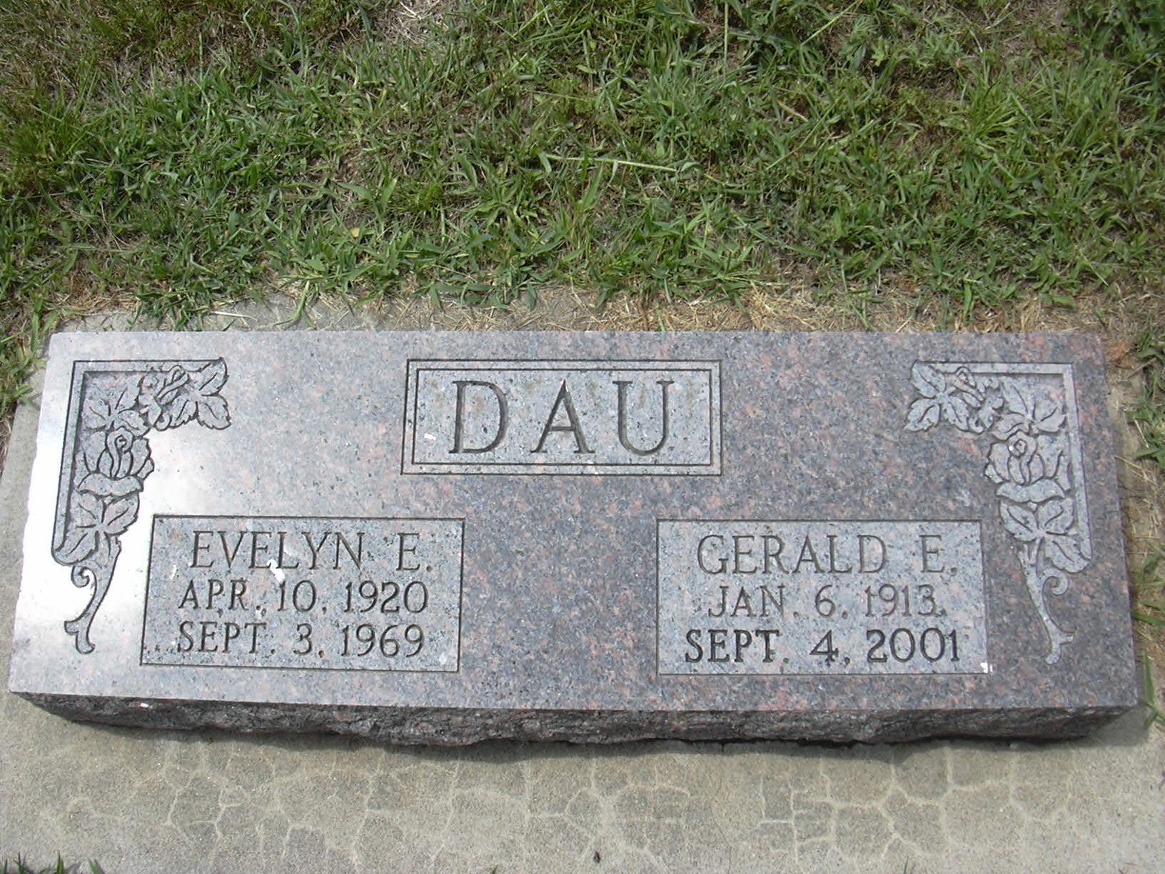 | Gerald Edward Dau | 6 Jan 1913 | 4 Sept 2001 | Evelyn E. Hansen | ||