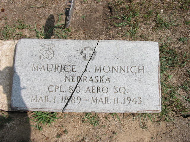 | 2409 | Maurice J. Monnich | 1 Mar 1889 | 11 Mar 1943 | Nebr. Cpl 80 Aero Sq. | |