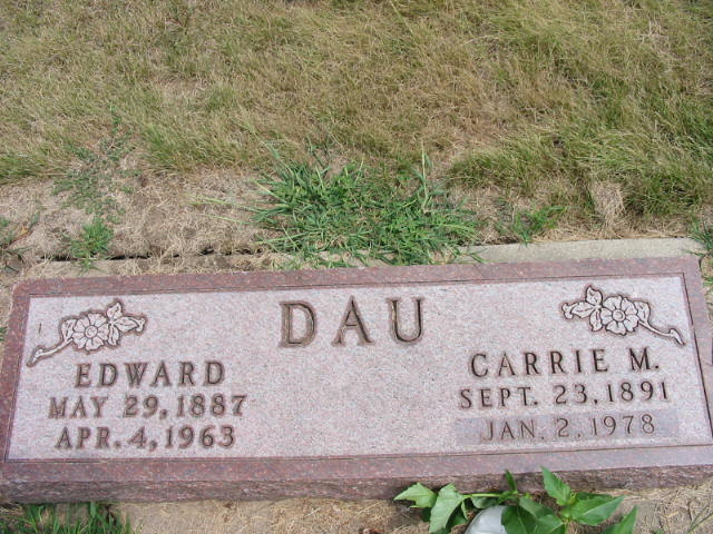 | Carrie Mary Dau | 23 Sept 1891 | 2 Jan 1978 | Edward Dau | Caroline Mary Heller | |