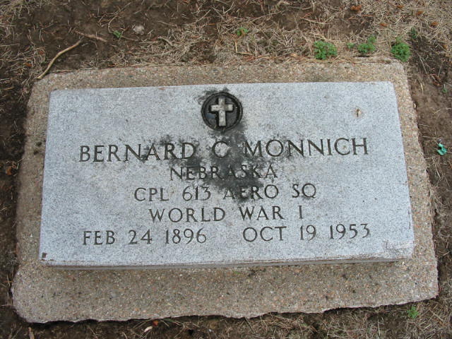 | 2419 | Bernard C. Monnich (same as #2414) 24 Feb 1896 | 19 Oct 1953 | Nebr. Cpl 613 Aero Sq. WWI | ||