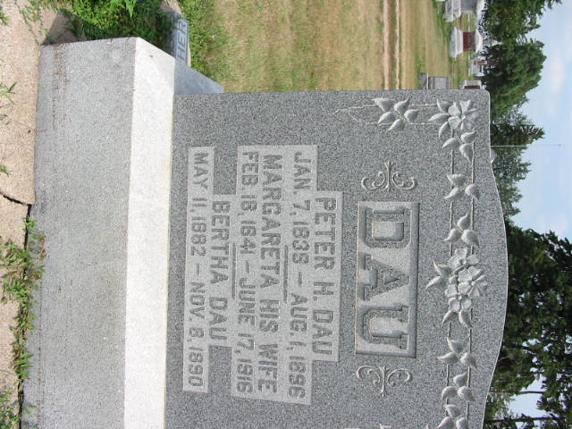 | Margareta Dau | 18 Feb 1841 | 17 Jun 1916 | Peter H. Dau | Margareta Elsabea Schoolman | |