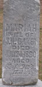 | Baker | Mariah Prisscilla | Sept. 27, 1855 | July 24, 1890 |