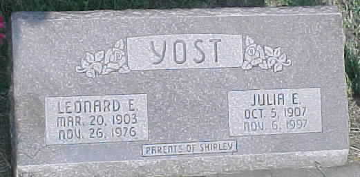 Yost, Julia E. (Oct. 5, 1907-Nov. 6, 1997) Tombstone photo