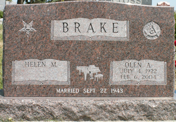 Brake, Olen (July 4, 1922-Feb. 6, 2004) Tombstone photo; Military marker