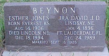 Beynon, Ira (Jan. 4, 1896-Dec. 24, 1989) Tombstone photo