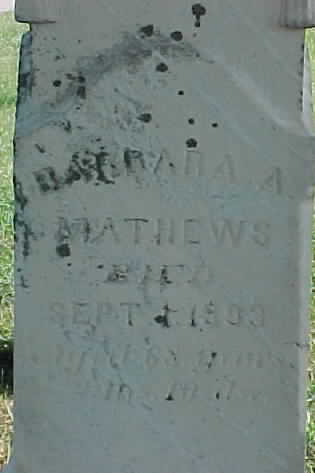 Mathews, Barbara (????-Sept. 1, 1893) Tombstone photo