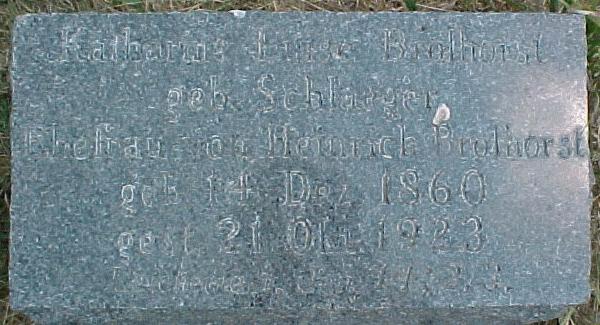| Brolhorst | Katharine L.Schlaeger | 14 Dec 1860 | 21 Oct 1923 | |