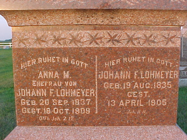 | Lohmeyer | Anna M. | 23 Jul 1863 | 17 Jun 1944 | |