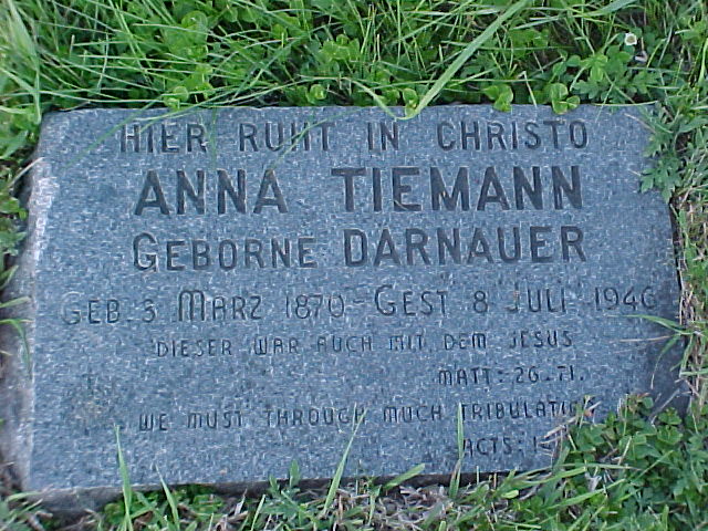 | Tiemann | Anna Darnauer | 3 Mar 1870 | 8 Jul 1946 | |