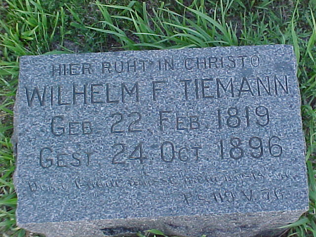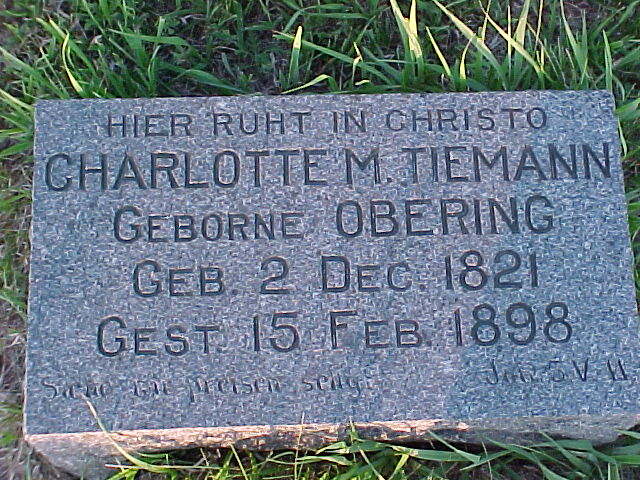 | Tiemann | Charlotte M. Obering | 2 Dec 1821 | 15 Feb 1898 | |