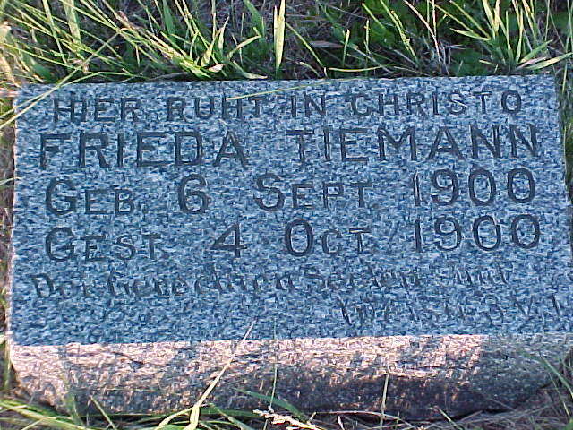 | Tiemann | Frieda | 6 Sep 1900 | 4 Oct 1900 | |