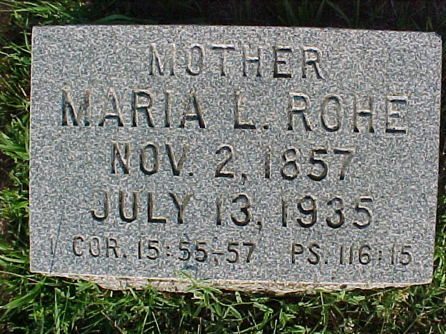 | Rohe | Marie L. | 2 Nov 1857 | 13 Jul 1935 | |