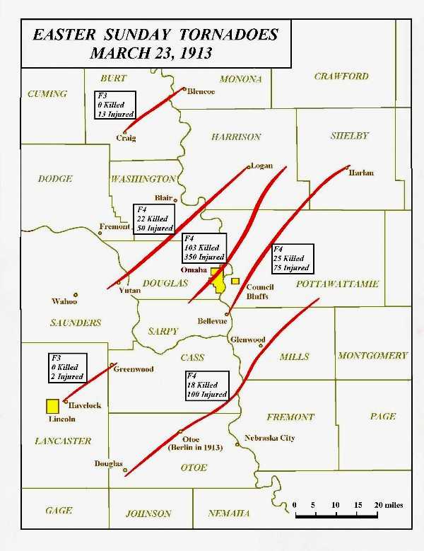 1913 - Map of multiple tornados that hit Nebraska & Iowa (Thanks to Brian Smith)