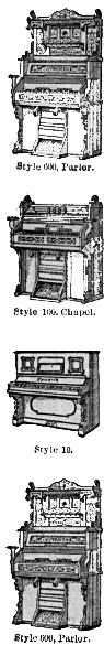 WEIGHT, BOXED, ABOUT 300 POUNDS This ls our POPULAR STYLE. The beautiful top adds much to its appearance, and, as it can be detached and packed beside the organ the box required for shipping is no larger than if Organ had no top. The Mouse and Dust Proof attachment entirely covers the pedals, closing automatically when keyboard lid is shut; and as the bottom of organ is entirely enclosed with wood, mice, so destructive to the action of organs, are effectually excluded.