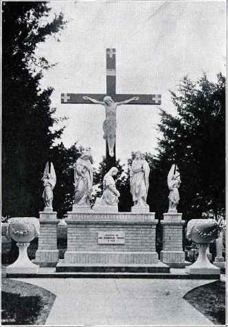 the main group. The urns of terra cotta add a dainty touch at each end of the group. The monument complete includes a wide entrance walk to the cemetery, leading from the adjoining church, school and church yard".