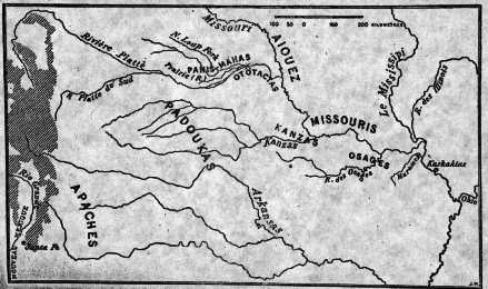 expedition. The 20th letter of Father Charlevoix contains interesting details, especially since they were gathered from Indians coming directly to Canada4, for all the other versions which we know came from the savage nations which frequented only our posts in the Illinois. The account of Le Page du Pratz, very much more developed and possibly inspired by that of Dumont, seems at times a little too fantastic and makes the error of taking the Missouri for the Otoptata and above all of confounding the Osage with the Pani. As to Dumont de Montigny he has quite certainly very much exaggerated the force of the Spanish Expedition by making it "1,500 persons, men, women, and children.5" From 200 to 250 Europeans, accompanied by several hundreds of Indian carriers, probably started from Santa Fe. But, as three-fourths of the members of the expedition returned to New Mexico for various reasons, the column after crossing the river of the Kanza included scarcely more than 200 persons, of whom 60 were Spaniards.
