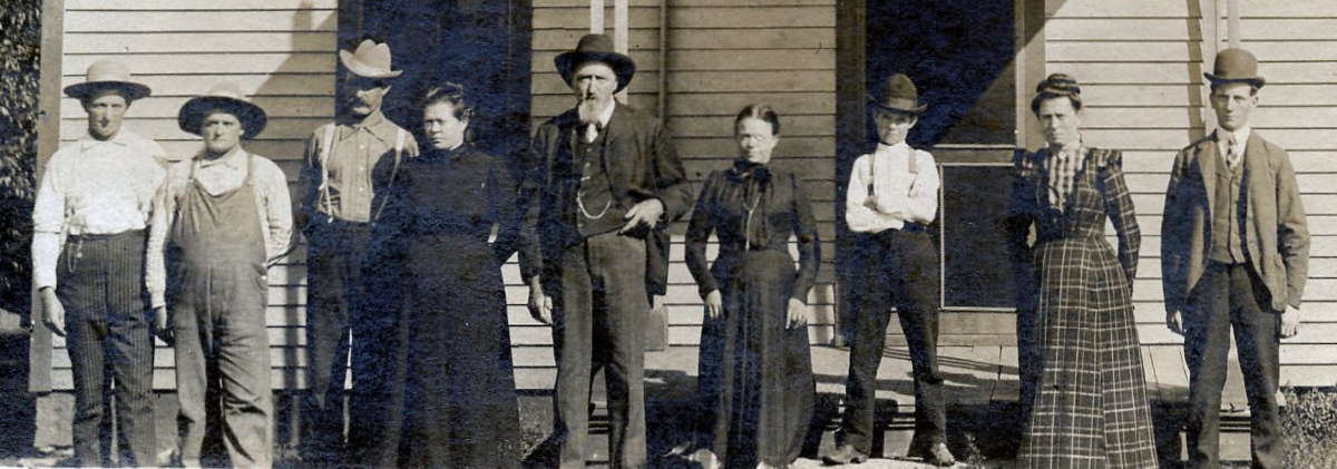 They are left to right: John Sailors, George Washington (Wash) Sailors, James Thomas (Jim Tom) Sailors, Alice Sailors Ankrom, William Henry Harrison (Coon or Coon Rod) Sailors, Mary Elizabeth Miller Sailors, Otis Bryan Sailors (my grandfather), Ida Sailors Percival, and Fred Sailors.
