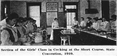 The work in cookery includes some of the best methods for the cooking and serving of nutritious foods, and the canning and preserving of some of the fruits in season each month. In connection with the instruction in canning and preserving, in June a bulletin be sent on "Bacteria and Moulds: Preservation of Foods."
