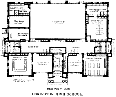 The buildings are very inadequate for the proper handling of so many students. Above the basement, the rooms not shaded by the adjoining buildings are quite well lighted and all are steam heated.