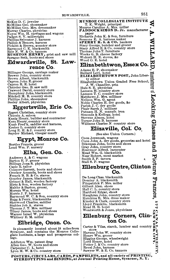 BOYD'S NEW YORK STATE DIRECTORY 1872-1873 FOR COLUMBIA COUNTY Elizaville, Columbia Co. (See also Union Corners.) Page 951
