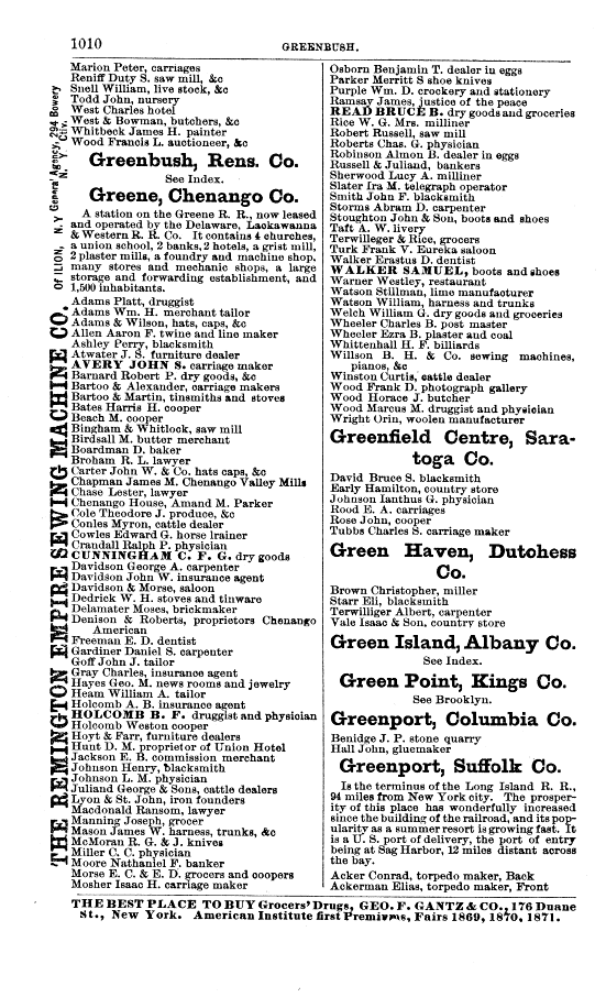 BOYD'S NEW YORK STATE DIRECTORY 1872-1873 FOR COLUMBIA COUNTY Greenport, Columbia Co. Page 1010